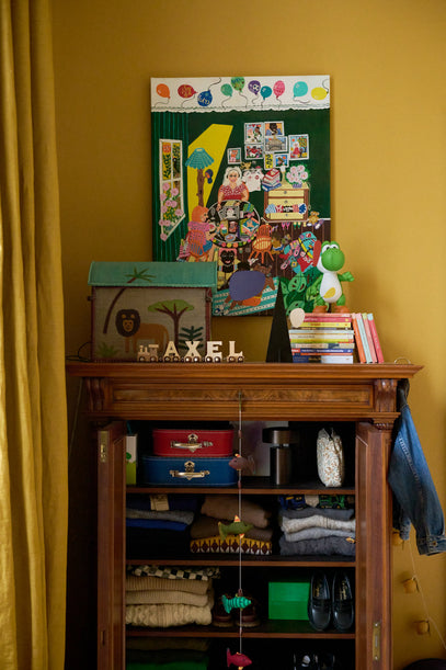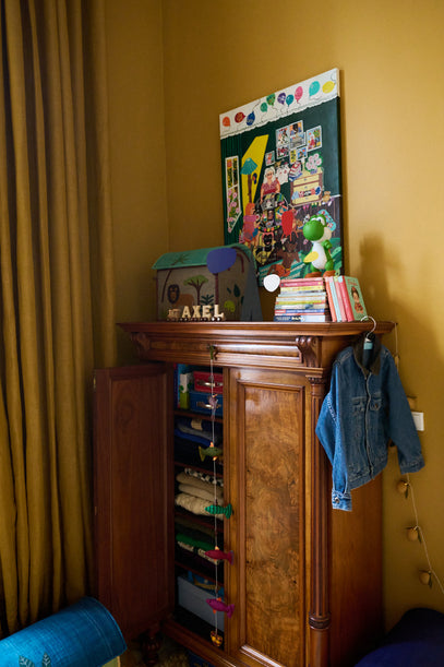 3-årige Axels værelse er smukt og helt sit eget, sammensat af dybe farver, vintage ting, et stort blødt gulvtæppe og fine, personlige detaljer.