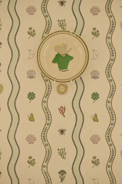Babar tallerken er fra Zara, og den blender fint ind blandt firkløvere, skaller og halvmåner.