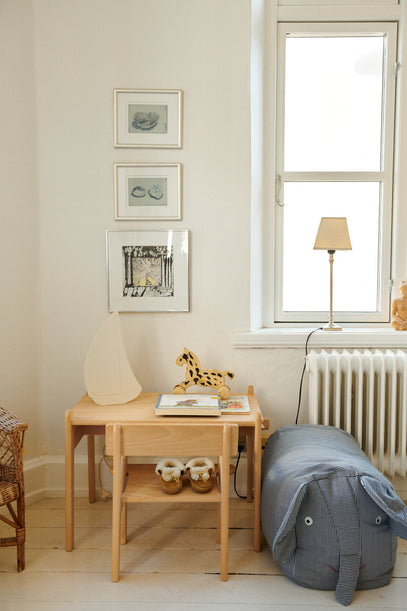 Peters Stol og Peters bord er en gave fra mormor. Sættet står i stuen og bruges flittigt. Ved siden af står en blød elefant puf, som Vincent leger med og sidder på. På bordet ligger 'Muldvarpen, der gerne ville vide, hvem der havde lagt en lort på dens hoved' – en skøn børnebog i en træk-ud udgave, der er sjov for både de mindste og lidt større børn.