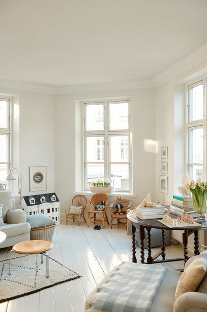 Vincents legetøj, bøger, møbler og andre ting er stille og roligt også begyndt at fylde mere i hele hjemmet. Her må man gerne se, at der bor et barn, og derfor er intet gemt væk eller kun til pynt. Se med her hvordan alle hans ting på fineste vis flettes ind med alt andet i det smukke, harmoniske hjem.