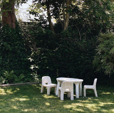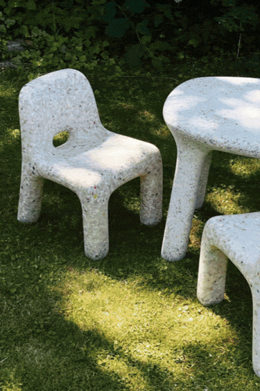 Charlie Chair fra det belgiske mærke Ecobirdy er fremstillet af 100% genbrugsplast og er et eksempel på genbrug, når det er bedst: Alle deres møbler er lavet af gammelt legetøj og spil.