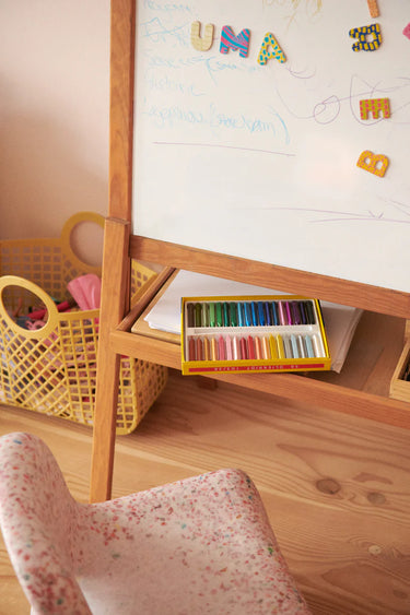 De robuste ben og designet gør stolen stabil at sidde på og lege ved, og de bløde former og afrundede kanter gør den til en sikker stol selv for de allermindste.