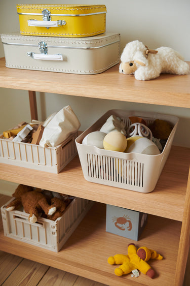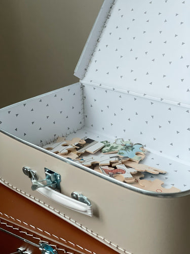 En flot kuffert til opbevaring af alt fra legetøj, tuscher, små figurer – og også som en lille taske, I kan tage med på tur.