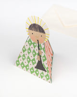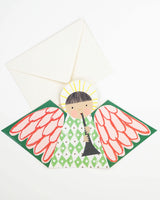 Send et ønske om en glædelig jul med dette søde fold-ud kort. Kortet kommer med en konvolut og er blankt på bagsiden, med plads til en julehilsen. Når kortet er modtaget og læst kan det foldes og stå som en lille sød engel.