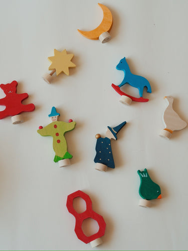 Brug de fine tal i træ og træfigurer til at pynte Fødselsdagsringen – også fra Grimm's – præcis som I ønsker det.