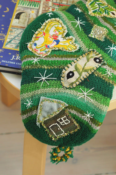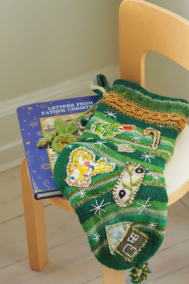 En meget smuk og helt unik håndstrikket julesok fra Helle Høgsbro Krag.