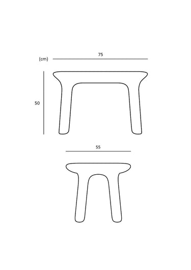 Højde 50 cm x dybde 55 cm x bredde 75 cm.