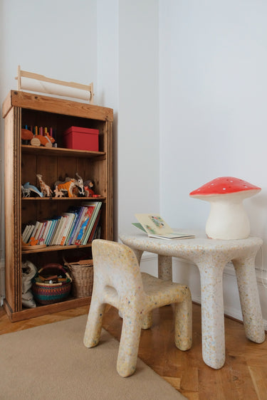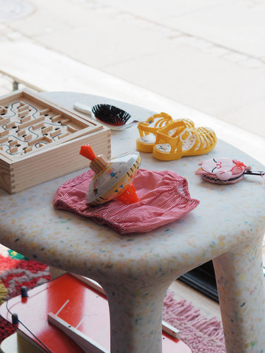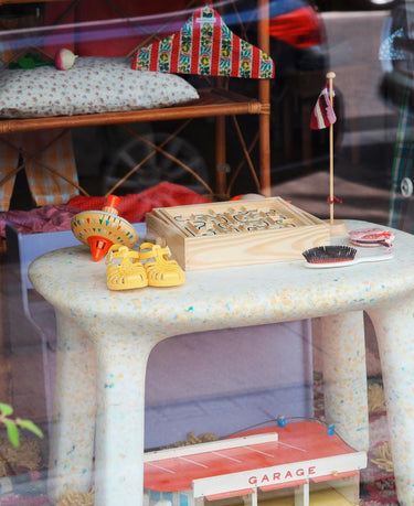 Luisa Table fra det belgiske mærke Ecobirdy er fremstillet af 100% genanvendeligt plast, og er et skønt eksempel på genbrug af gammelt legetøj og andet plastik, der ellers ville være endt på lossepladsen.