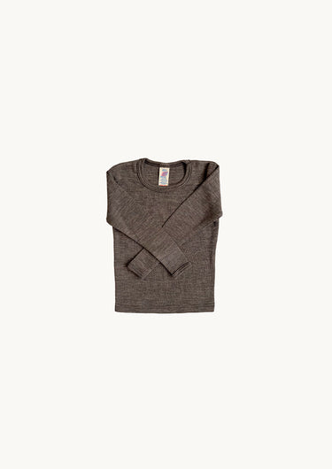 Blød langærmet t-shirt fremstillet i en fantastisk uld og silke blanding, som er blød at have på og holder dit barn tilpas varm dagen lang.