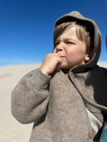 En dejlig blød og varm uldjakke til de mindste, der kan bruges til forår, efterår og vinter som et ekstra varmt lag under flyverdragten.