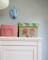 De smukke farver, det praktisk låg (husets tag) og de vidunderlige broderede detaljer gør kurven velegnet til at placere hvor som helst i hjemmet. Alle Raffia opbevaringshuse er håndlavet, og derfor er der ikke to der er ens.