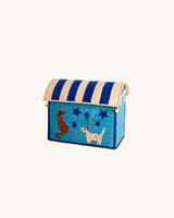 De smukke farver, det praktisk låg (husets tag) og de vidunderlige broderede detaljer gør kurven velegnet til at placere hvor som helst i hjemmet. Alle Raffia opbevaringshuse er håndlavet, og derfor er der ikke to der er ens.