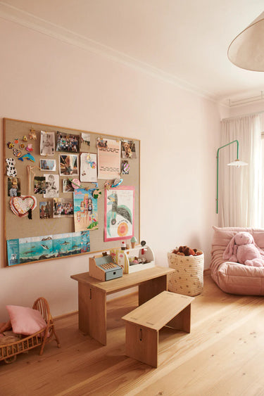 Med sin højde på 29 cm kan bænken også bruges som en lav aflang hylde til legetøj, eller som et bord, hvor de helt små kan stå op og lege – indtil de er store nok til at bruge bænken til at sidde på.
