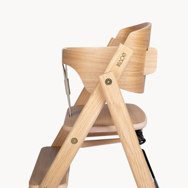 En moderne, elegant og sammenklappelig højstol i 100% certificeret bæredygtigt egetræ.