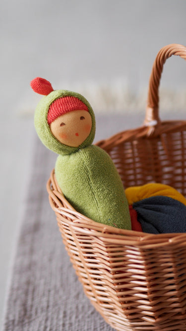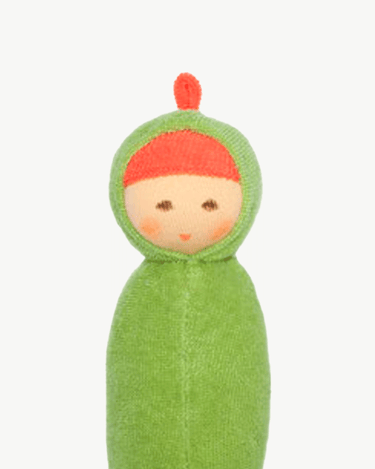 Dukken er produceret af 100% økologisk bomuld, og er helt uden kemi – et perfekt stykke legetøj til babyer, der elsker at røre, holde fast og putte i munden.
