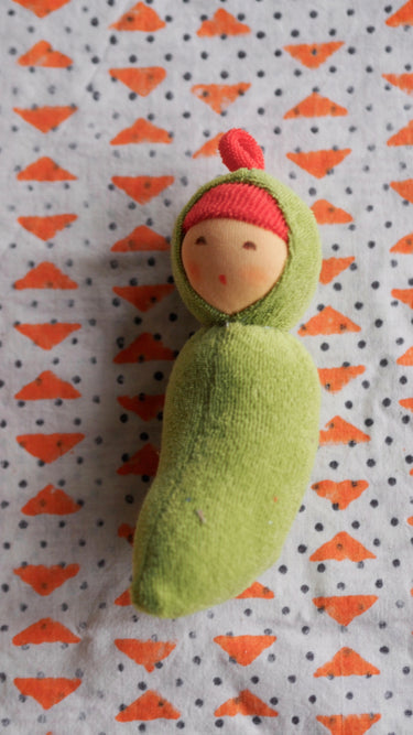 Den sødeste lille bønne-dukke med en lille klokke i.