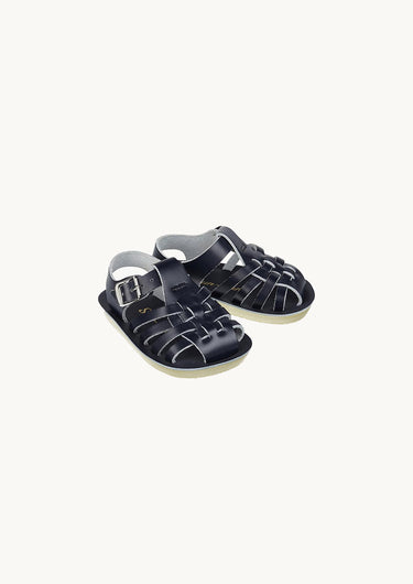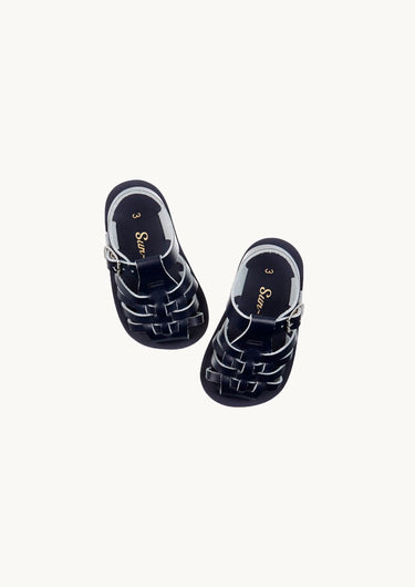 Salt-Water Sandals er de mest yndige sandaler til de små fødder. Designet med et gitter i fisherman sandal stil foran, der beskytter de små tæer, mens de lærer at tage de første skridt. Lavet af 100% vandtæt læder, rustfri spænder og en svampet blød sål. En fantastisk sommersandal som passer til alt.