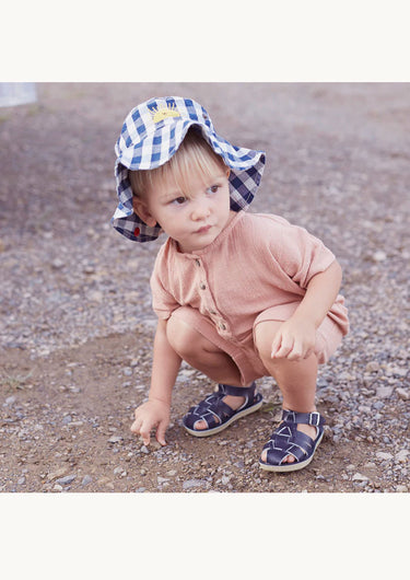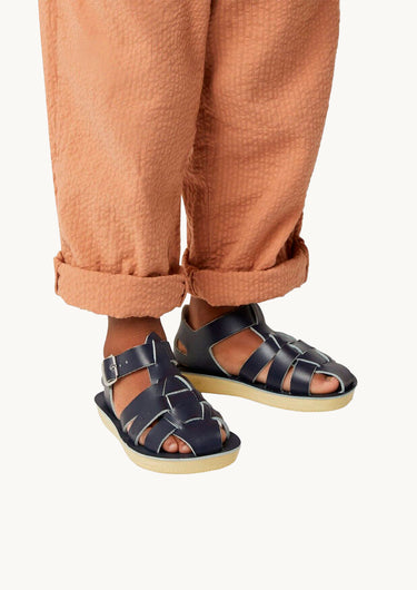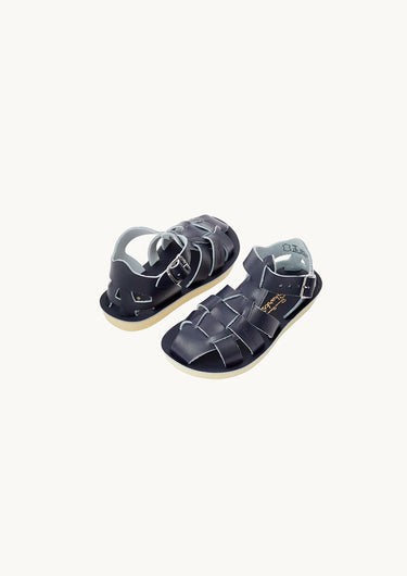 Shark sandalen her er en lukket sandal, der beskytter de små tæer. Sandalen er fremstilet avet af 100% vandafvisende læder, rustfri spænder og en svampet blød sål. En fantastisk sommersandal som passer til alt og til både drenge og piger.
