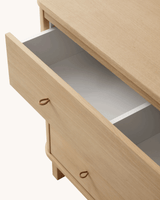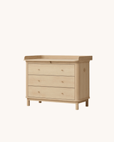 Puslekommoden i eg er en elegant og funktionel løsning til børneværelset. Kommoden har tre rummelige skuffer, hver opdelt i to rum, hvilket giver god plads til opbevaring af babyens tøj, bleer og sengetøj – og altid indenfor rækkevidde.