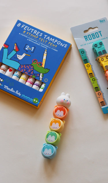 8 stempeltusser med 2 funktioner, en ekstra tyk spids i den ene ende og et stempel i den anden.