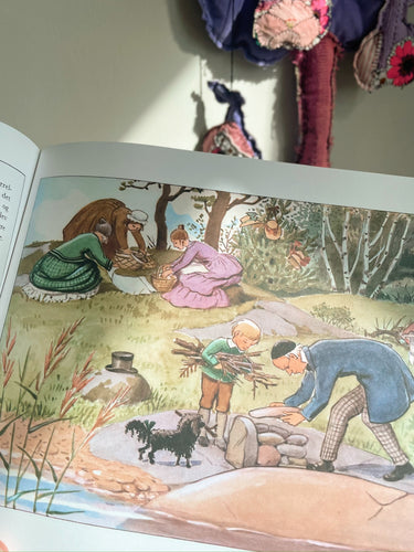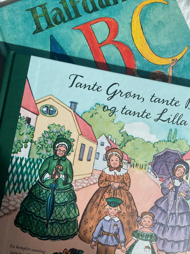 Den velkendte historie om tante Grøn, tante Brun og tante Lilla kommer her i et samlet bind med andre historier, hvori de tre tanter også medvirker.