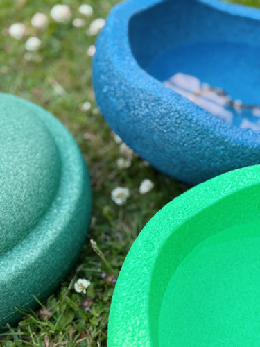 Brug én eller flere sten til uendelige lege- og bevægelsesmuligheder. Stenene er stærke nok til at sidde på, klatre på og kaste med. De er desuden vandafvisende og kan derfor også bruges udendørs. Når de ikke er i brug kan stenene let stables til et tårn, så de sparer plads.