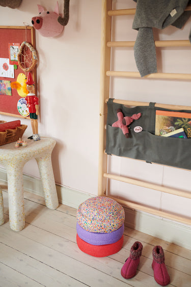 Brug én eller flere sten til uendelige lege- og bevægelsesmuligheder. Stenene er stærke nok til at sidde på, klatre på og kaste med. De er desuden vandafvisende og kan derfor også bruges udendørs. Når de ikke er i brug kan stenene let stables til et tårn, så de sparer plads.