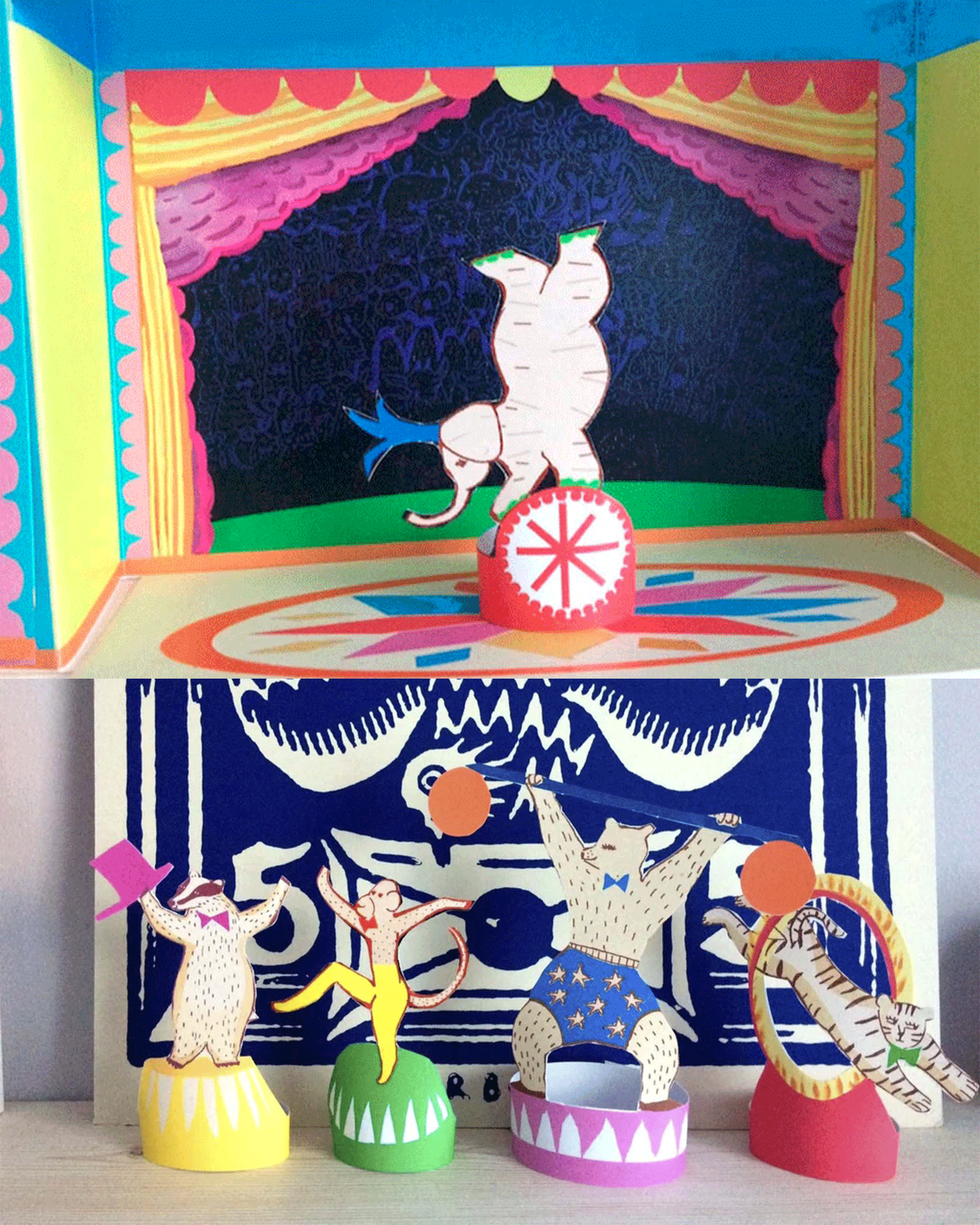 Figurerne er printet på sort baggrund, og ser derfor stadig fine ud, selv hvis små hænder klipper, og ikke lige rammer stregen. Cirkusset er på størrelse med en skoæske når det er færdigt, og kan både leges med og udstilles fint på en hylde.