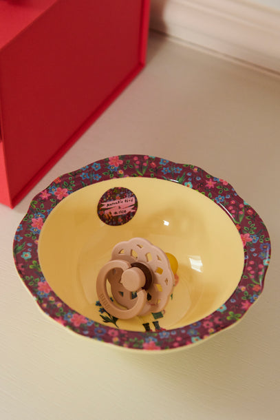 A bowl from Natalie Lété is used to keep pacifiers close at hand.