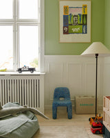 This is the Charlie Chair – a chubby, playful little chair. It might look heavy, but it only weighs 2,9 kg. making it easy to move around the house, even for children. Its soft forms and rounded edges, and its sturdy body and legs, make this a great chair for toddlers and kids.