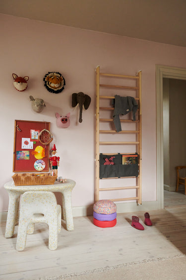 Once attached safely to the wall, the Wall Bar is the place for active children to climb, play, and move, offering a fun indoor activity that fosters gross motor skills. Unlike traditional wall bars, KAOS Endeløs Wall Bar is crafted as a beautiful piece of furniture you’ll be proud to have in your living space – not something to hide away in the basement.