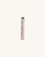 Cardboard tube showing colourful illustrations when looking through the magnifying glass at its end.