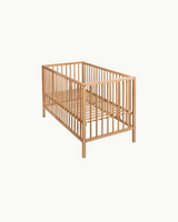 A beautiful baby crib made from solid beech. This crib features an adjustable height bottom with three positions (30 cm, 45 cm, and 60 cm), allowing you to customize it to the needs of your growing child.