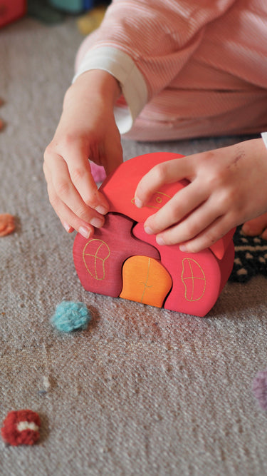 The 'Gnome's House' consists of four pieces that fit together perfectly, and look beautiful on the shelf when not in play. A wonderful gifting idea.