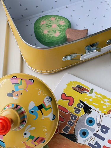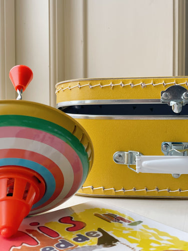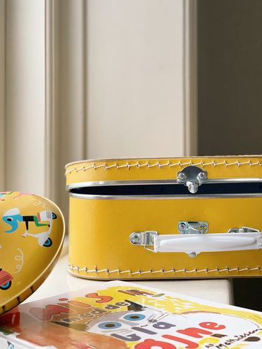 A wonderful yellow suitcase, perfect for treasures or for carrying stuff around the house, into the garden or on short trips.
