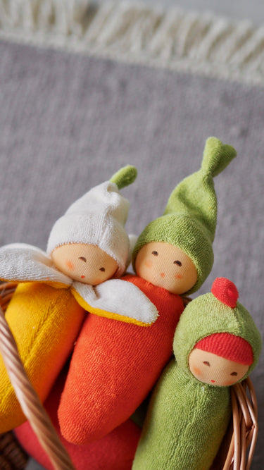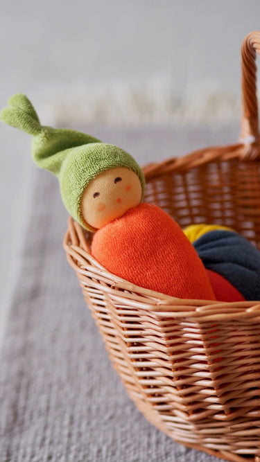 With a bell inside, the rattle doll provides both auditory and tactile stimulation. Shaped to make it easy for the baby to grasp and hold, while the soft textile makes it fun to chew on.