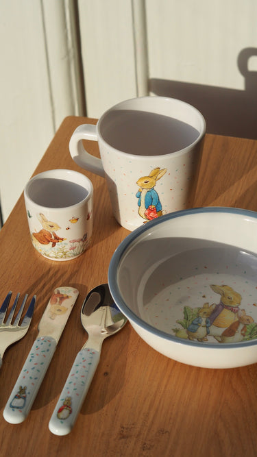 The cup is decorated with a lovely illustration of Peter the Rabbit.