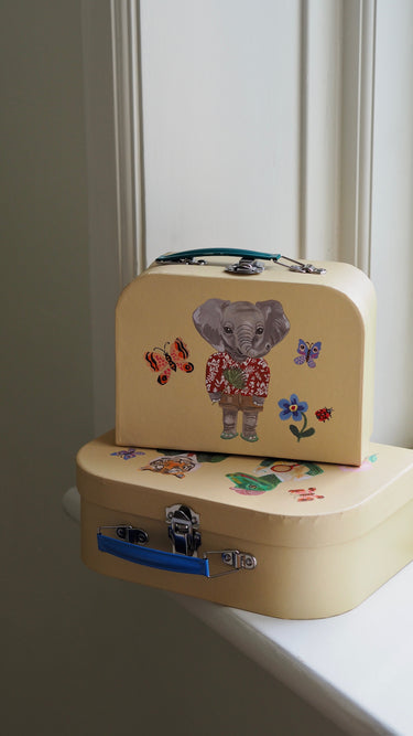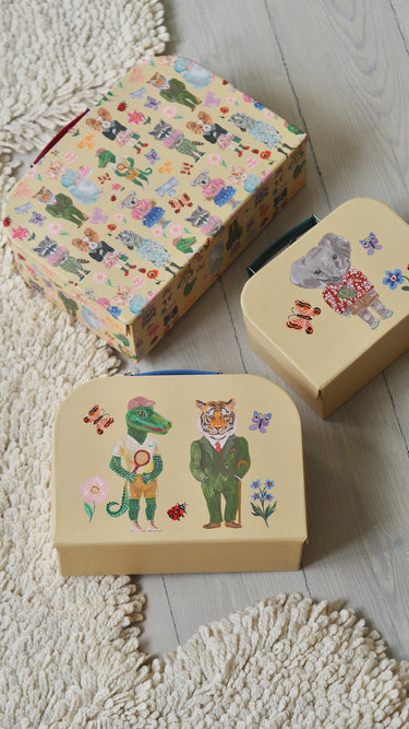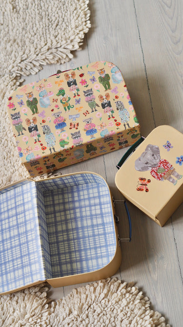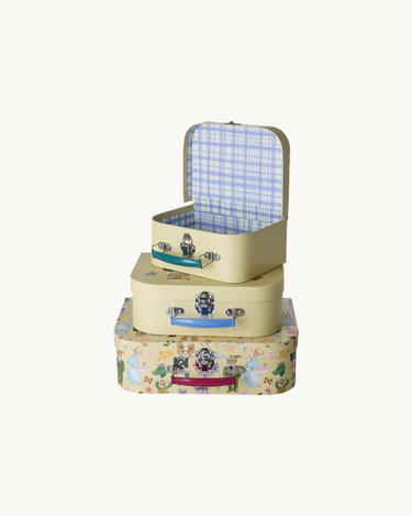 A wonderful suitcase set featuring artwork by Nathalie Lété - perfect for treasures or for carrying stuff around the house, into the garden or on short trips.