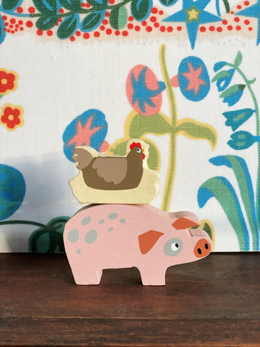 A cute little hen lying on her eggs made from sustainable solid rubber wood, and painted in a soft water colour stain. Pair with the other animals from Tender Leaf to create a little group of farm and forest animals.