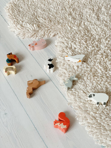 A cute little wooden sheep made from sustainable solid rubber wood, and painted in a soft water colour stain. Pair with the other animals from Tender Leaf to create a little group of farm or forest animals.