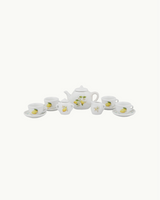 A cute porcelain tea set with a lemon theme.