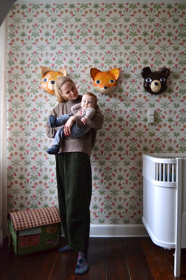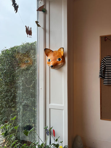 This beautiful mask made from papier-mâché is a fun way to add a bit of colour and charm to your baby's nursery or child's room. This one is Pedro, the Fox.