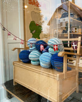 The latest arrival of this cute whale comes in tones of mint green/blue and light blue. Please note: Not two are alike, and therefore, each whale is unique. These images give a sense of size and style; they all look different.