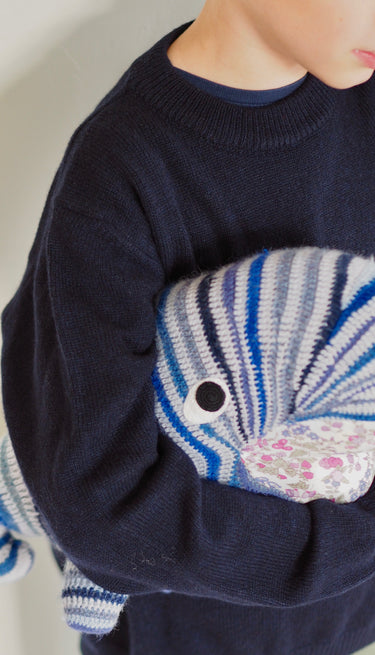 Made from 90% baby alpaca and 10% pima cotton, this whale comes with stripes and fabric details inside the mouth, and a fun little tail. It's an unusual and eye-catching teddy/toy, and most definitely a keeper well beyond the nursery years.