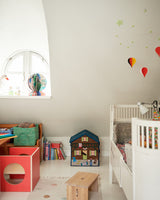 This mobile has been inspired by the "Montgolfières" of the 18th century and modern hot air balloons. The Three Balloon mobile is one of Flensted Mobile's most iconic and popular mobiles and is designed by the founder Christian Flensted in 1979.