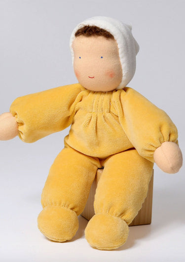 A beautiful, soft and cuddly doll i a wonderful yellow colour.