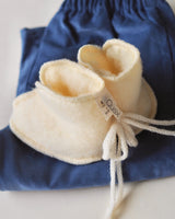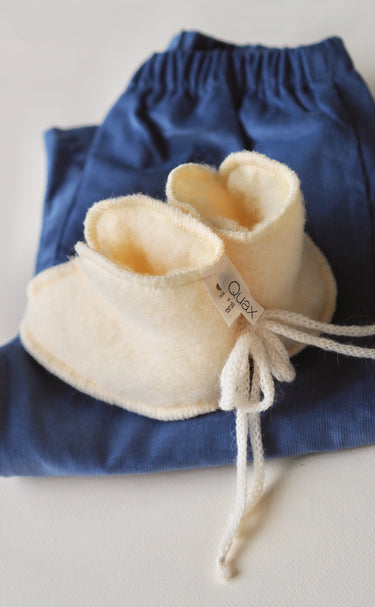 Lovely, warm, and cozy baby booties in a soft natural cream color from Quax. Thoughtfully designed to keep your baby’s delicate feet warm and comfortable in every season.