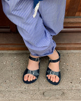 The Surfer is one of the most popular Salt-Water Sandals, and it is easy to see why: The adjustable toe buckle and ankle strap makes it the best all-rounder for both wide and narrow feet. In addition, it comes on a super soft sole with rust proof buckles, and is just a great all round sandals for playing by the beach, a day in kindergarten or when traveling and moving about.