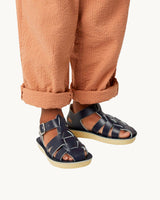 Salt-Water Sandals are the most adorable sandals for little feet. These sandals have a fisherman sandal style lattice across the front, protecting little toes while learning to take first steps. Made from 100% waterproof leather, rust proof buckles and a spongy soft sole, they are a great summer sandal. which can be paired with everything.