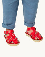 The perfect summer sandal for little explorers. This is Shark, a closed toe sandal for babies, here in a red colour.